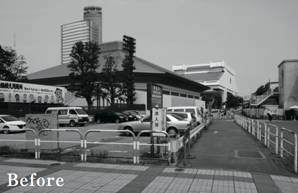 駐車場を道と広場に変化させ、街をつなぐ賑わいの場に変える。駅前の「死産」を、両国再興の「資産」へ。両国を中心に、下町を集合体に。