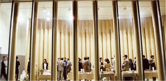 紙柱が立ち並ぶ小さなギャラリーが、街の品格をつくる。